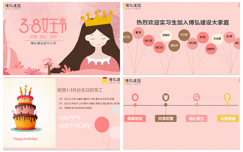 三月,乍暖還寒中,陽光一天天明媚起來,隨處彌漫著濃濃的春意,在這生機(jī)盎然的時(shí)節(jié)里,三·八女神節(jié)如約而至,為感謝大家的的辛勤付出,共慶節(jié)日,博弘建設(shè)遂寧公司開展了主題為“簡(jiǎn)單快樂,共享歡聚,凝心聚力,讓愛傳遞”的全員歡聚活動(dòng)。本次活動(dòng)主要圍繞著“三八女神節(jié)”、“實(shí)習(xí)生迎新會(huì)”、“第一季度生日會(huì)”三大主題展開,各個(gè)環(huán)節(jié)都給...